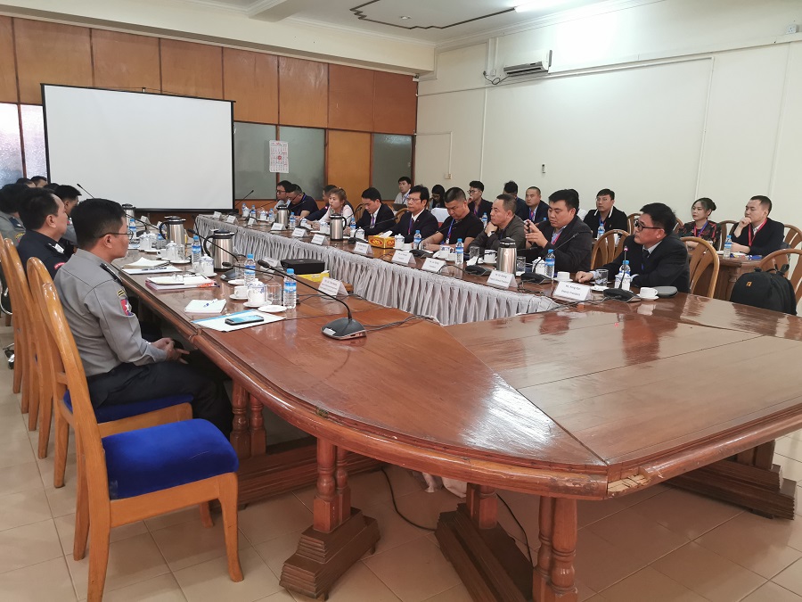 苗丹局长首先对考察团一行表示了热烈欢迎,向我们介绍了缅甸的警察部队在安防、消防建设的基本情况以及中国政府给予缅甸的援助项目。苗丹局长指出,中缅两国是山水相连的友好邻邦,两国人民之间的传统友谊源远流长,中国政府在基础设施建设方面给予了缅甸很大的支持,对此,我们表示真诚的感谢,也希望中方企业能到缅甸投资发展,我们警察部队将提供最大的支持。
